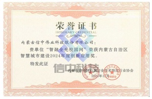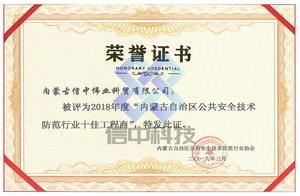 是国家高新技术企业、科技型中小企业、内蒙古股权交易中心科创版挂牌企业、内蒙古农业大学研究生培养基地和产学研合作单位。通过了ISO9001质量管理、环境管理、职业健康、信息安全管理体系认证。获得了AAA级信用企业、AAA级诚信经营示范单位、AAA级质量服务信誉企业、AAA级重合同守信用企业、公共安全行业创新先锋企业、十佳工程商、优秀工程商、内蒙古数字城市建设年度创新应用奖、内蒙古自治区智能化优质工程奖、中国安防地区优质工程(集成)商、中国安防百强工程(集成)商、声光视讯行业百强工程商等荣誉奖项50余项。